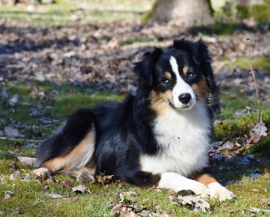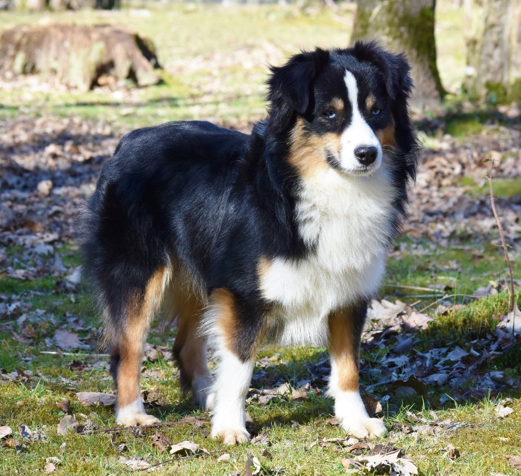 Charly la malice...tendre et câlin, mais mâlin comme un singe! Il est le fils du Grand champion américain Moonbaby's Proud to be an american et de Moonbaby's Snake eyes, tous deux importés des Etats-Unis. Un magnifique petit chien, avec de la classe.